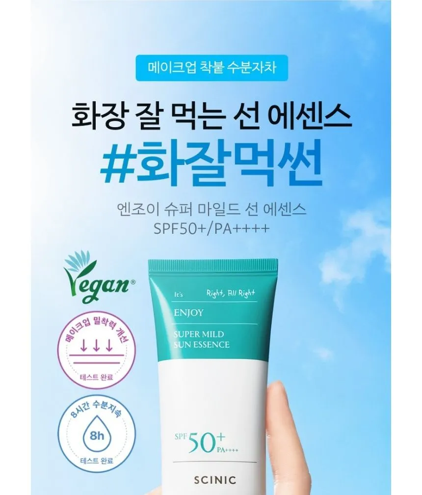 SCINIC Enjoy Super Mild Sun Essence SPF 50+ PA++++ – Lightweight UV Protection with 60% Hydrating Essence