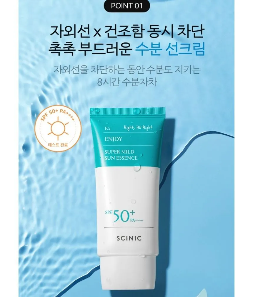 SCINIC Enjoy Super Mild Sun Essence SPF 50+ PA++++ – Gentle, Moisturizing Korean Sun Cream